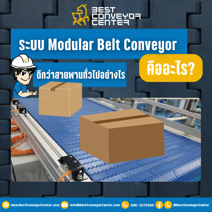 สายพานลำเลียงที่ประกอบจากชิ้นส่วนพลาสติกแบบแยกชิ้น (โมดูลาร์) ที่นำมาเชื่อมต่อกันด้วยแกน (Pin) ทำให้เกิดเป็นสายพานที่ยืดหยุ่น แข็งแรง