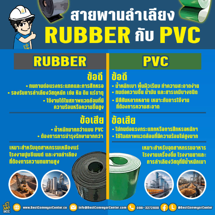 สายพานลำเลียงแบบยาง กับ PVC ต่างกันอย่างไร?