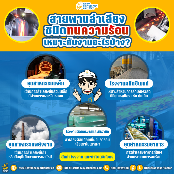 การเลือกใช้สายพานลำเลียงแบบทนความร้อน ถือเป็นสิ่งจำเป็นที่ช่วยเพิ่มประสิทธิภาพและความปลอดภัยในกระบวนการผลิต