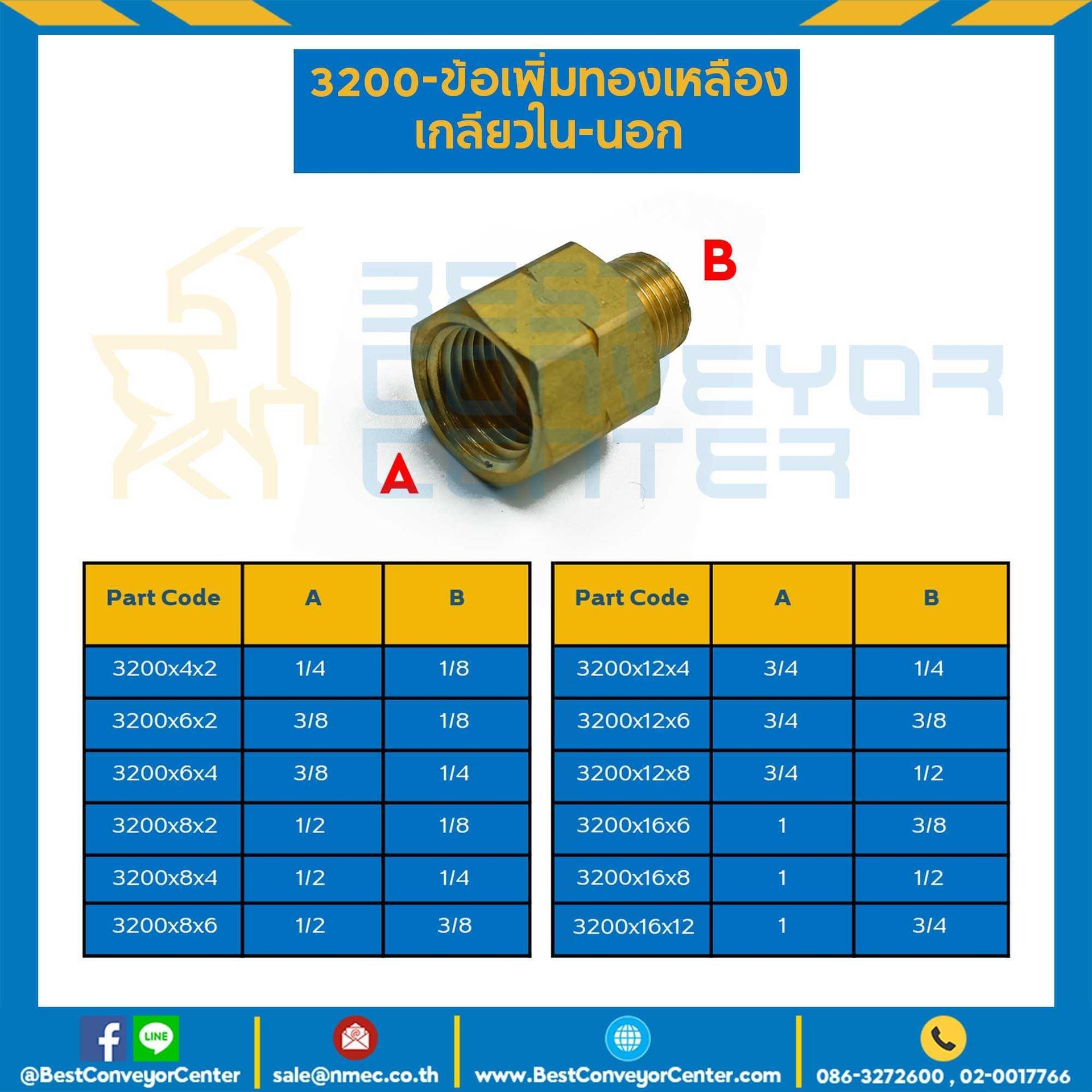 3220x16x8 ; ข้อลดเหลี่ยมทองเหลืองเกลียวนอก-ใน 3220x16x8 ขนาดเกลียว : 1″,1/2″