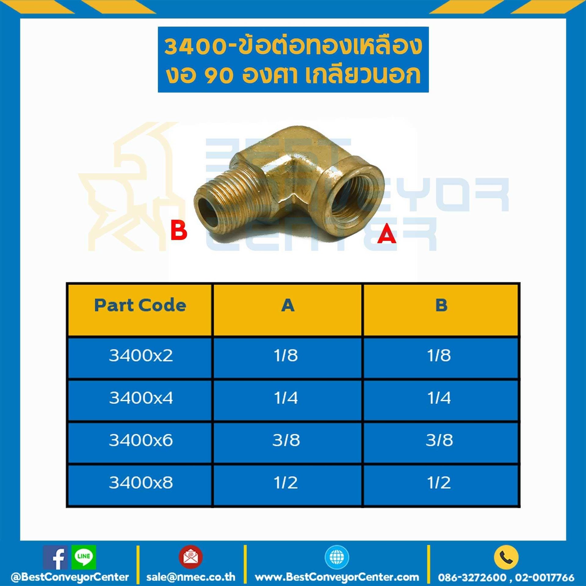 ข้อต่อทองเหลืองงอ 90 องศาเกลียวใน-นอก 3400×4
