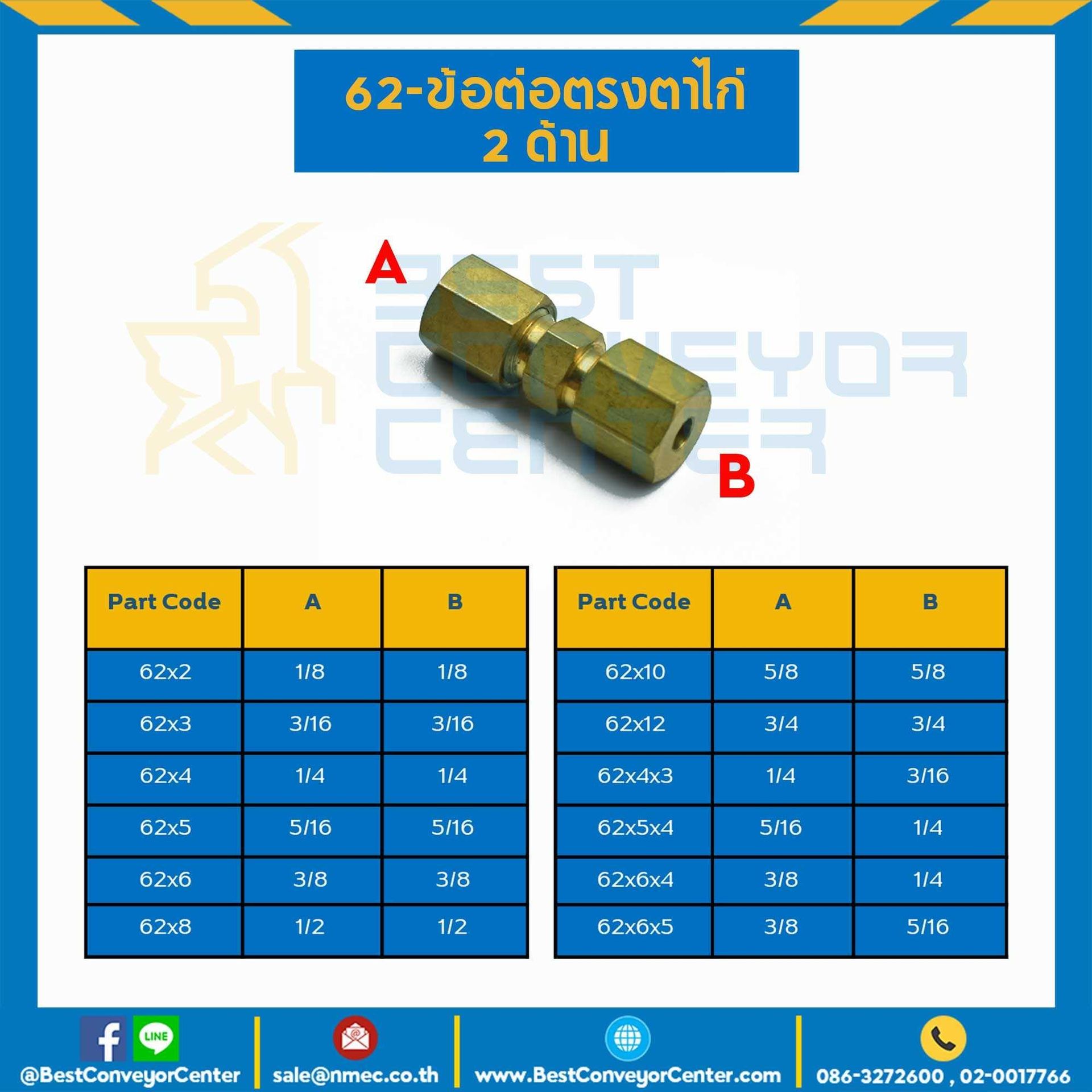 ข้อต่อตรงตาไก่ 2 ด้าน 62x4x3