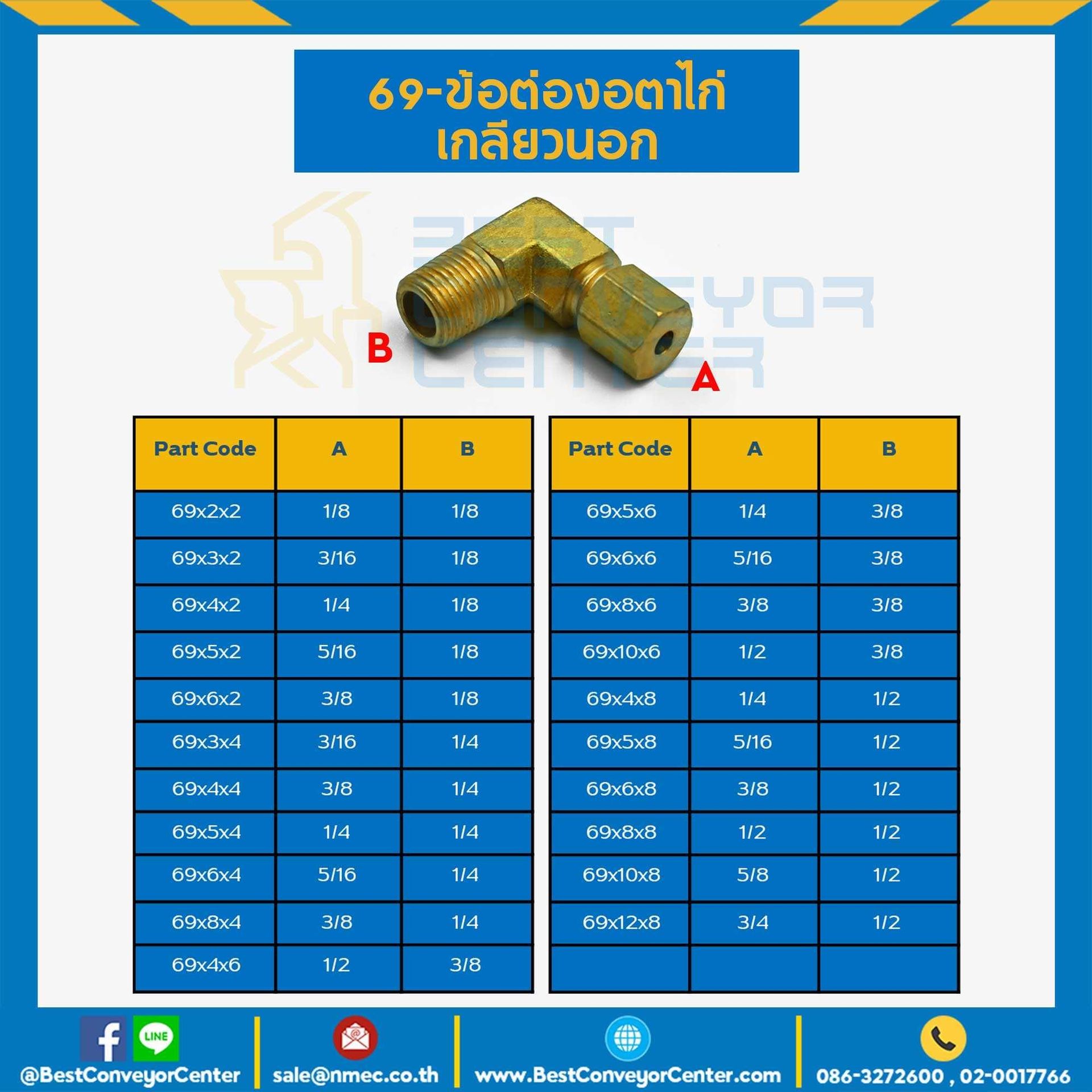 ข้อต่องอตาไก่เกลียวนอก 69x10x8