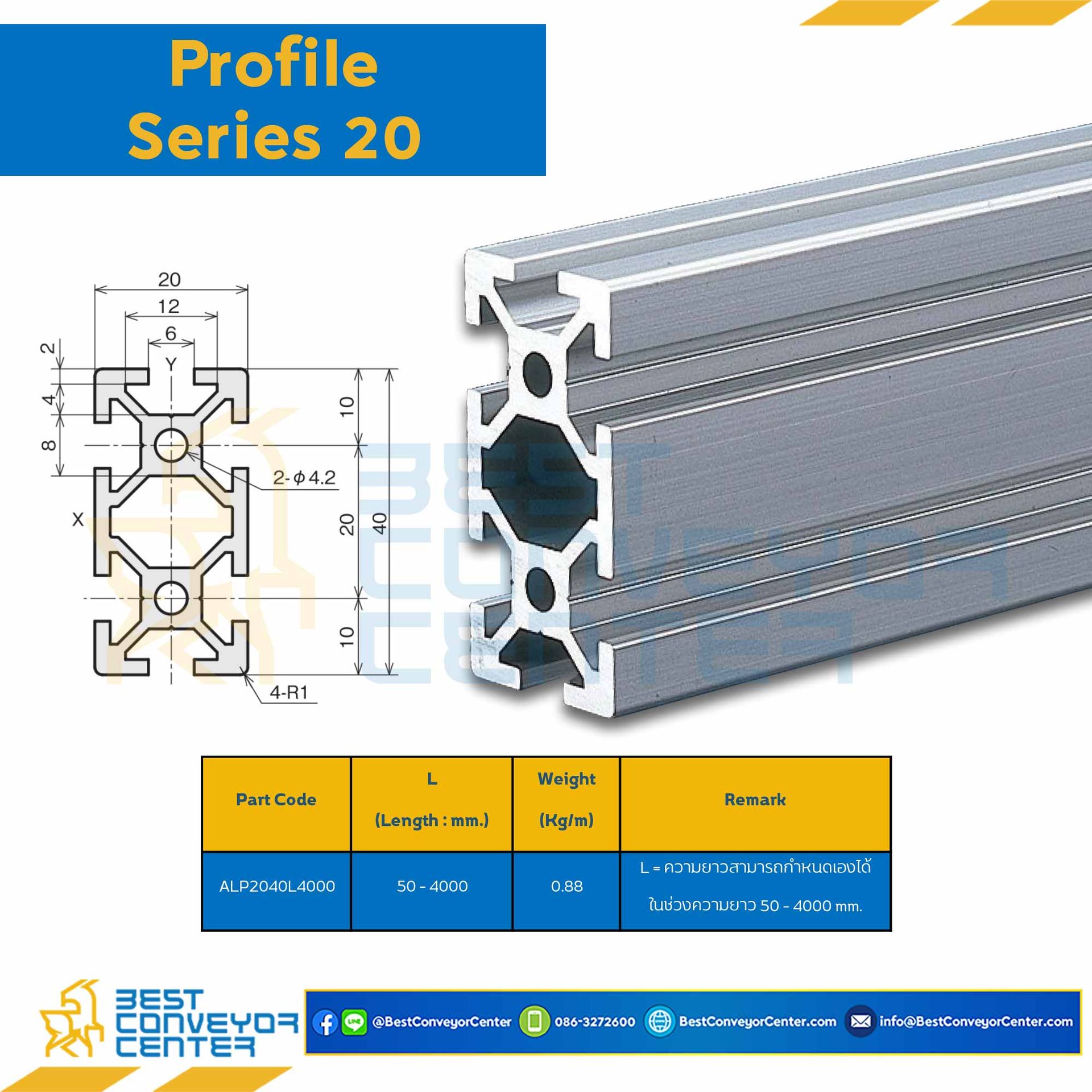 ALP2040L3500 Aluminum Frame ขนาด 20×40 ยาว 3500 mm.