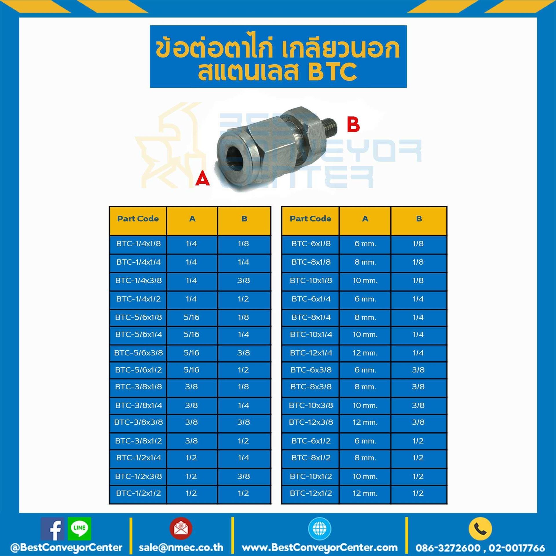 ข้อต่อตาไก่เกลียวนอก สแตนเลส 5/16″x1/4″ : BTC-5/16×1/4