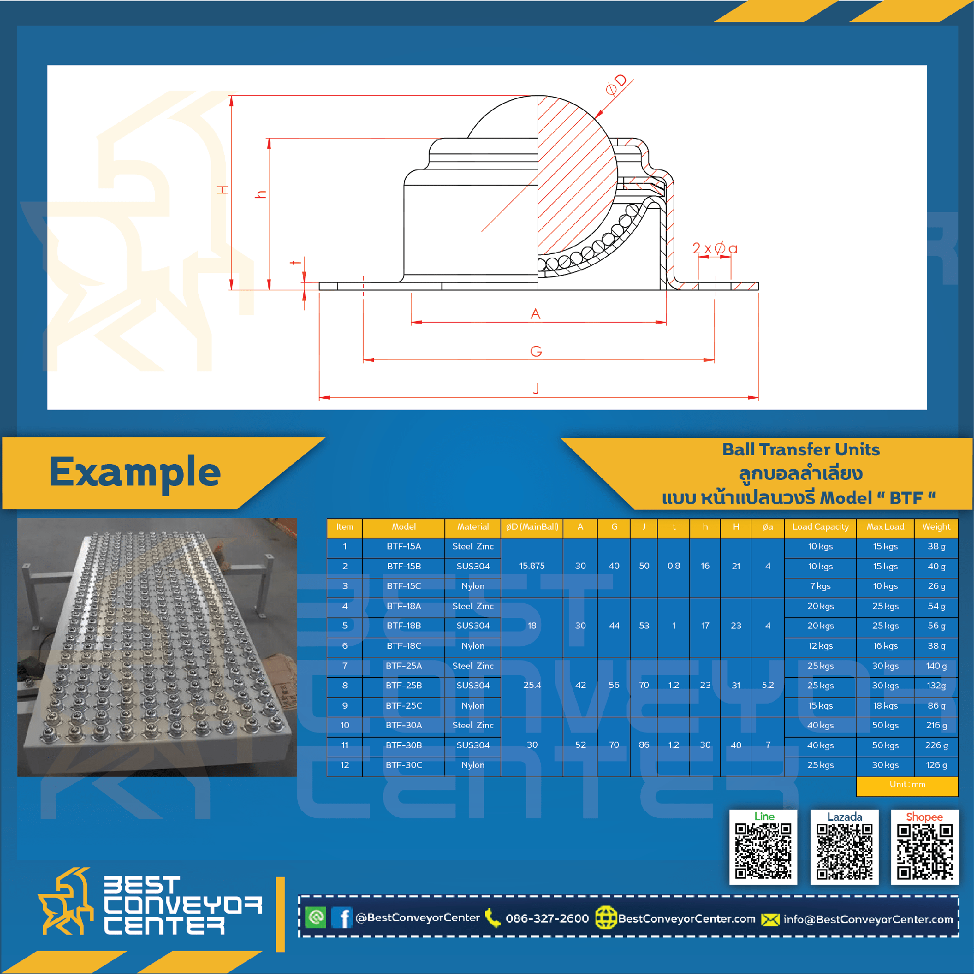 BTF-30C - Ball Transfer Units แบบหน้าแปลนวงรี 30 mm. (Nylon)