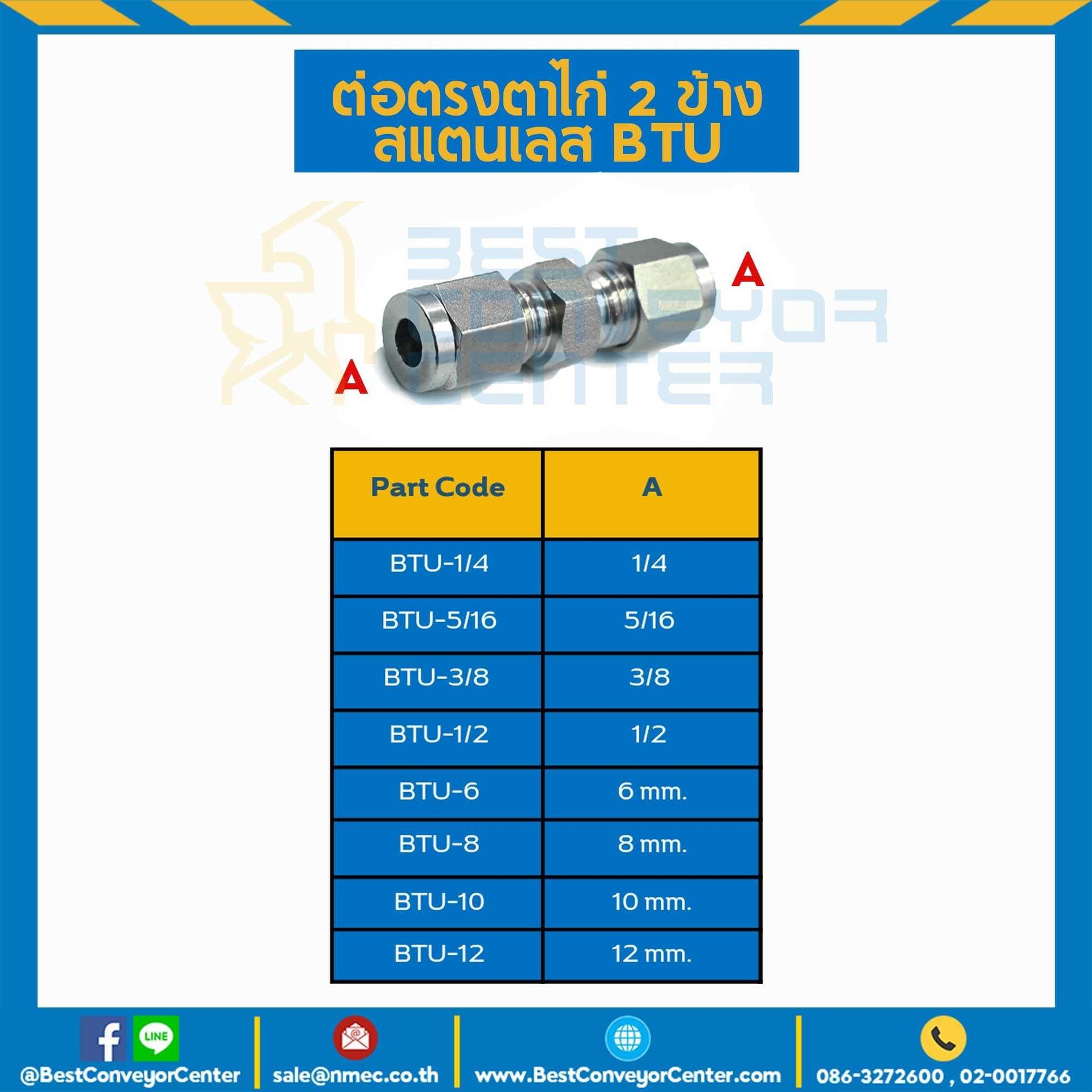 BTU-6 ต่อตรงตาไก่ 2 ข้าง สแตนเลส 6 mm.