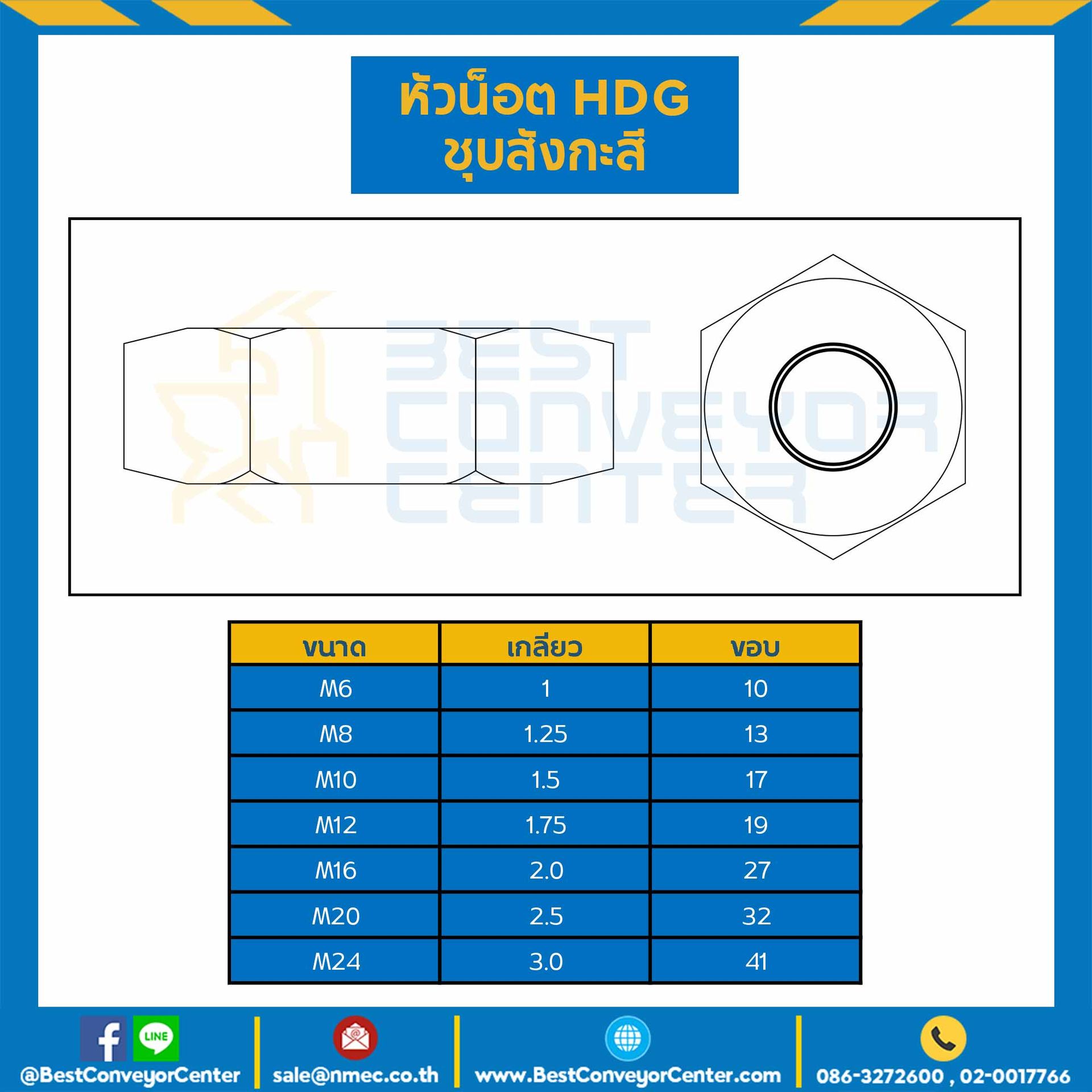 HDG-M20 ; หัวน็อตชุบสังกะสี ขนาด M20