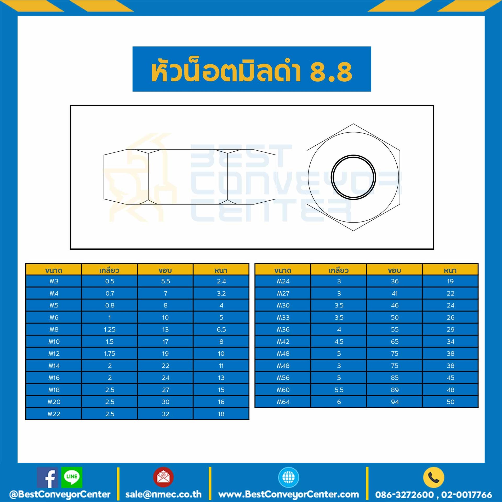 หัวน็อตมิลดำ เหล็กแข็ง เกรด 8.8 ขนาด M42x4.5 ขอบ 65 หนา 34 mm. : HN-C8.8-M42