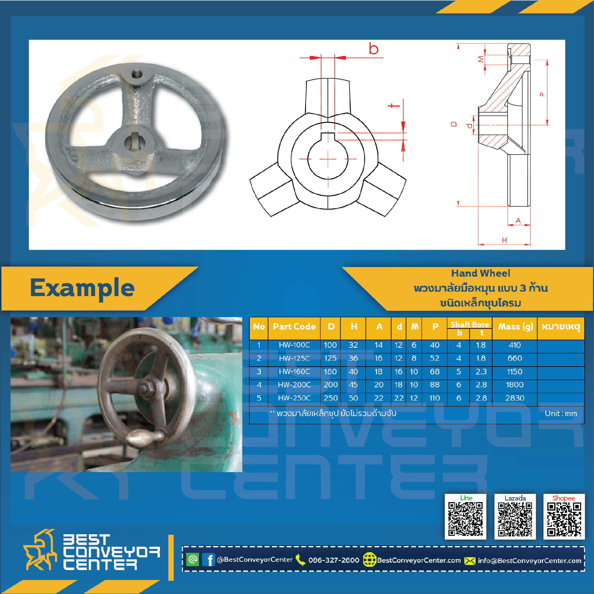 HW-125C พวงมาลัยมือหมุน 3 ก้าน.เหล็กชุบโครม 125 mm.