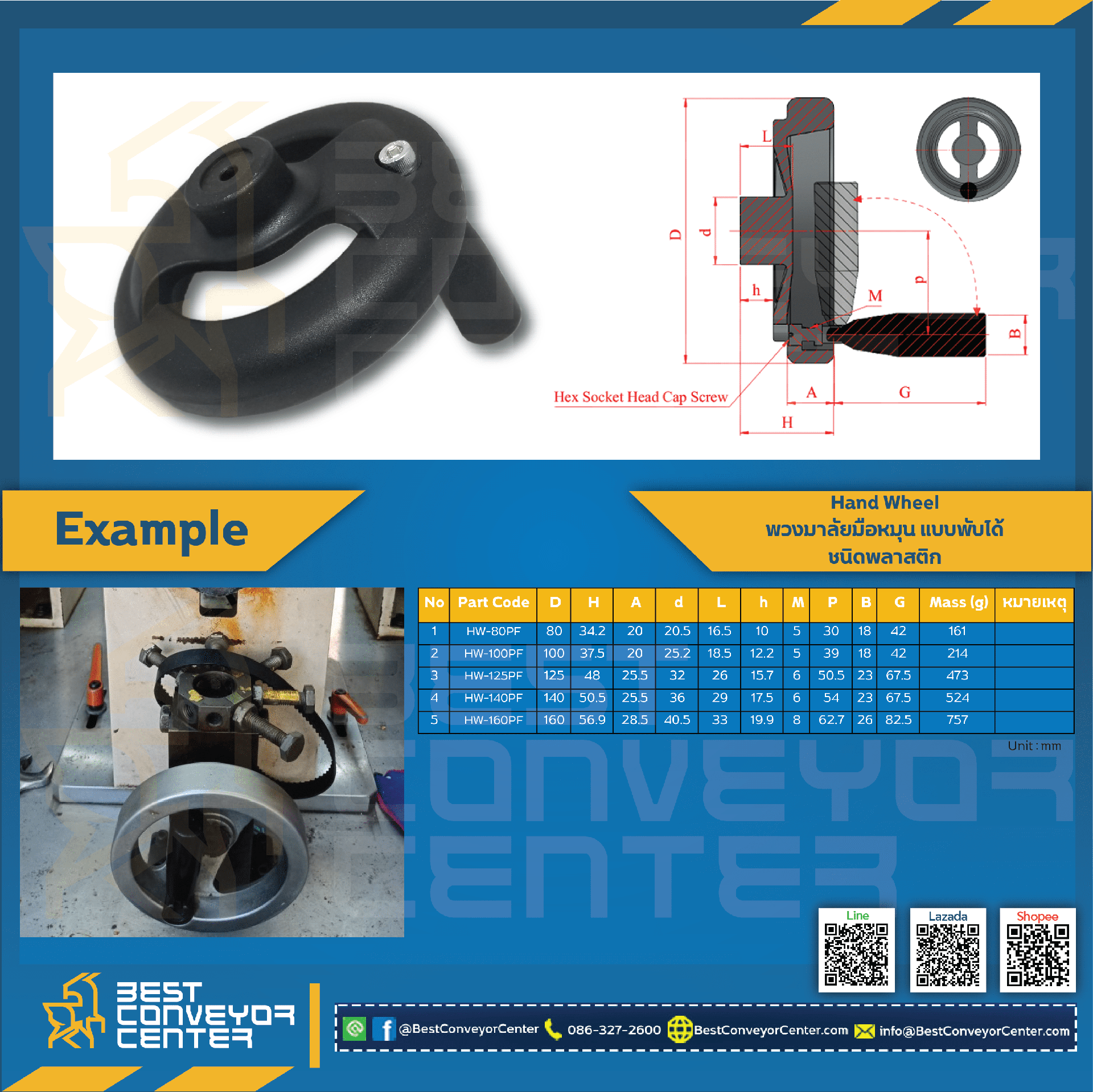 HW-140PF พวงมาลัยมือหมุนพลาสติก ด้ามจับพับได้ 140 mm.