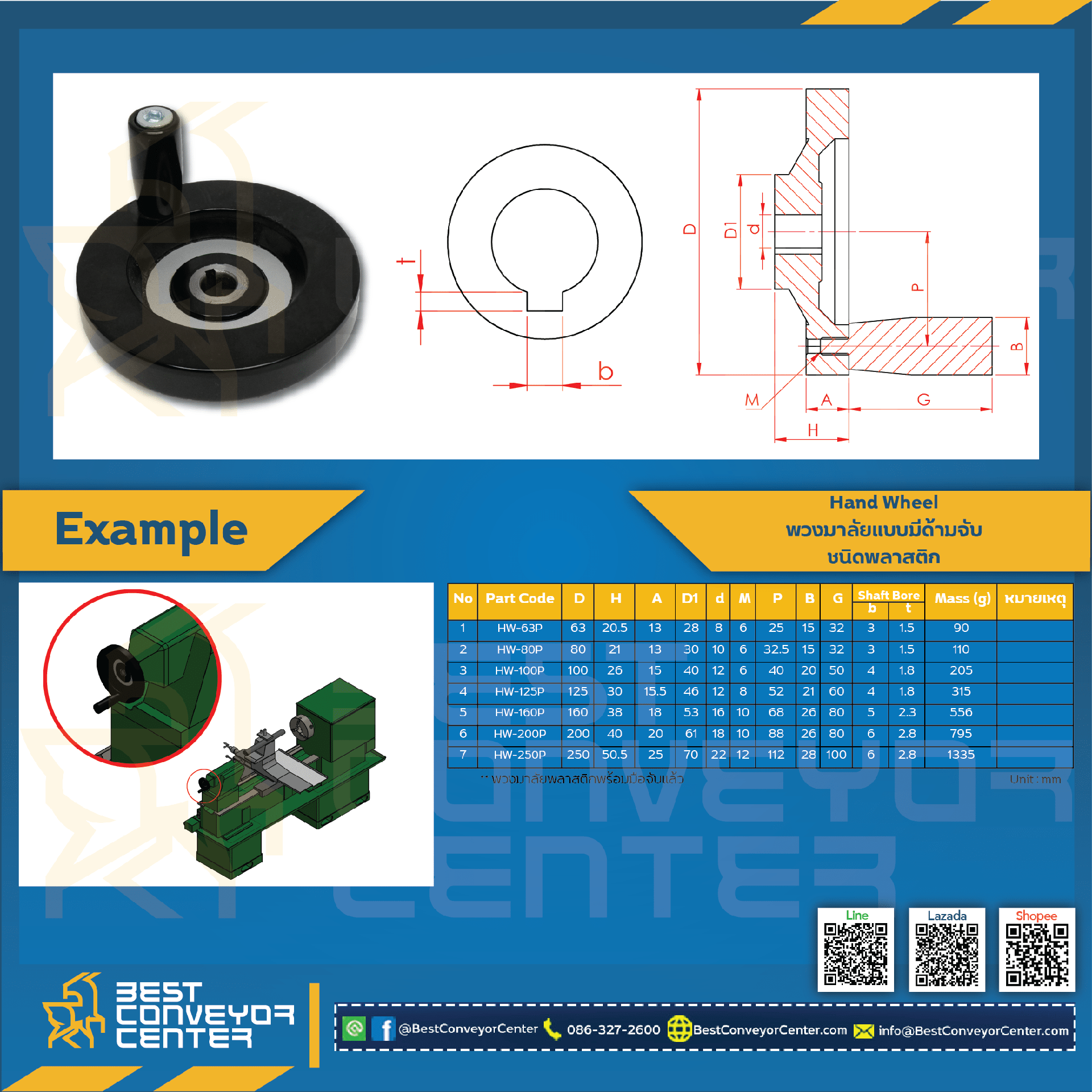 HW-63P พวงมาลัยมือหมุนพร้อมด้ามจับพลาสติก 63 mm.