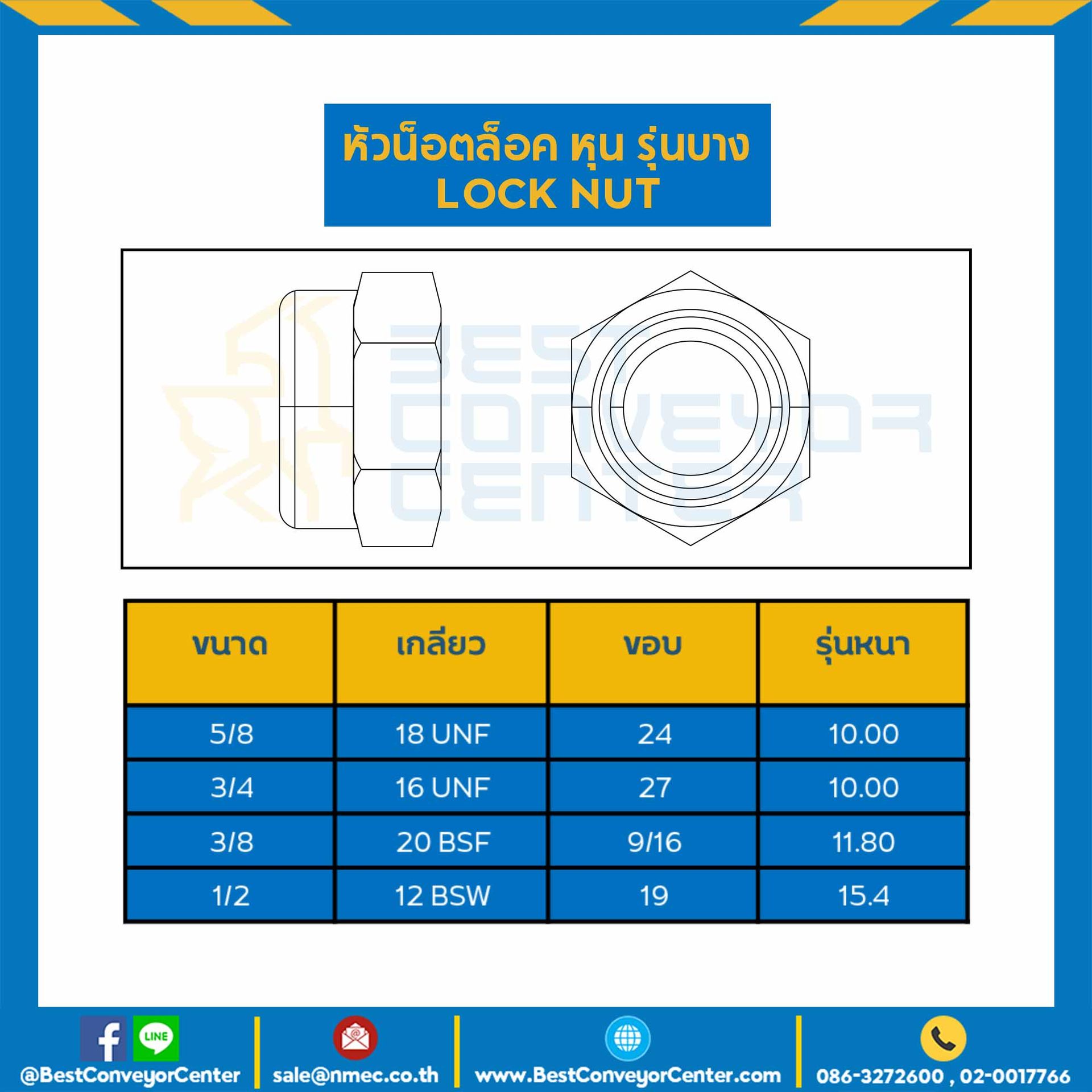 JLN-5/8-UNF:หัวน็อตล็อคหุน ขนาด 5/8″x18 UNF ขอบ 24 รุ่นบางพิเศษ 10 mm.