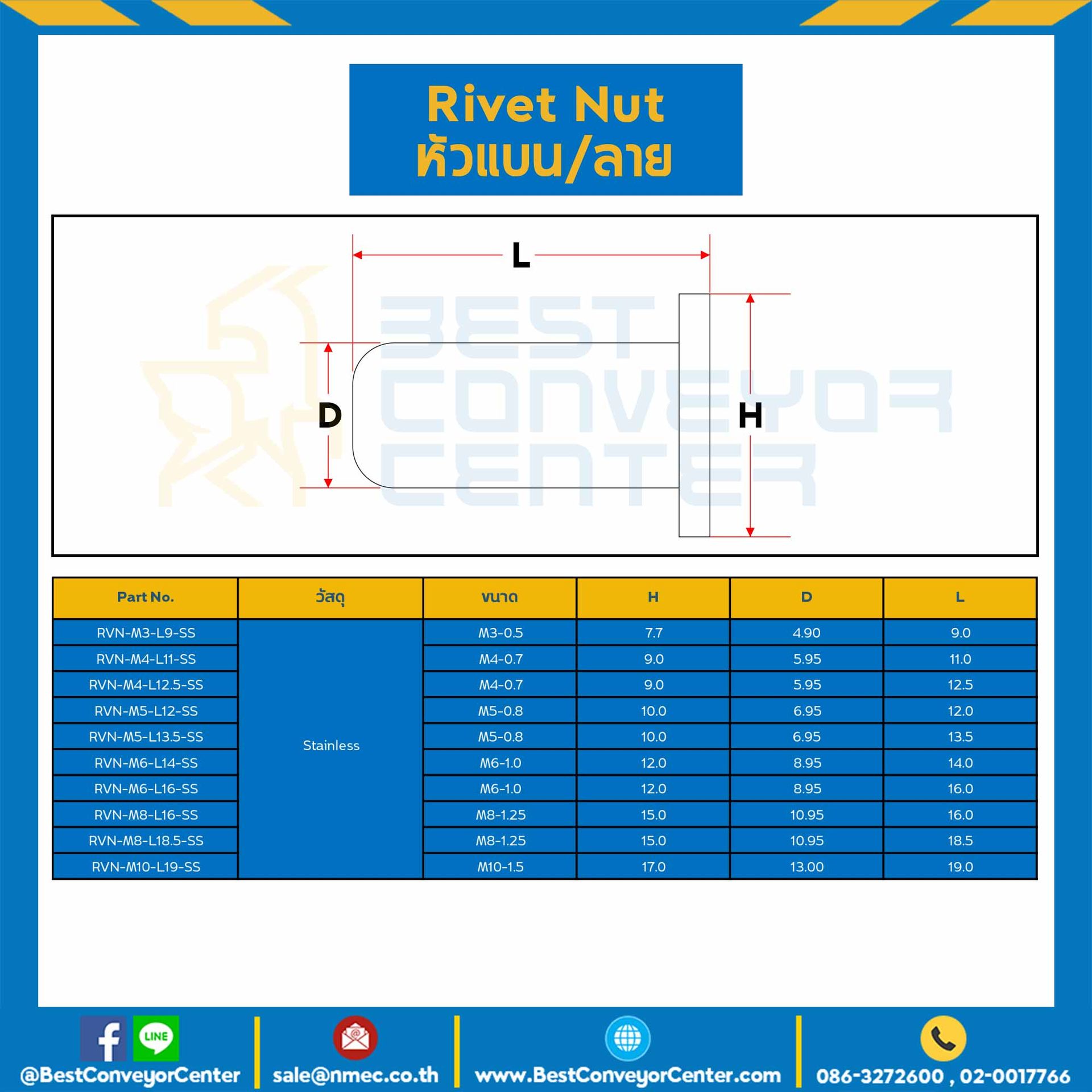 RVN-M8-L16-SS รีเวทนัทสแตนเลส หัวแบนคอลาย ขนาด M8x1.25 ยาว 16 mm.
