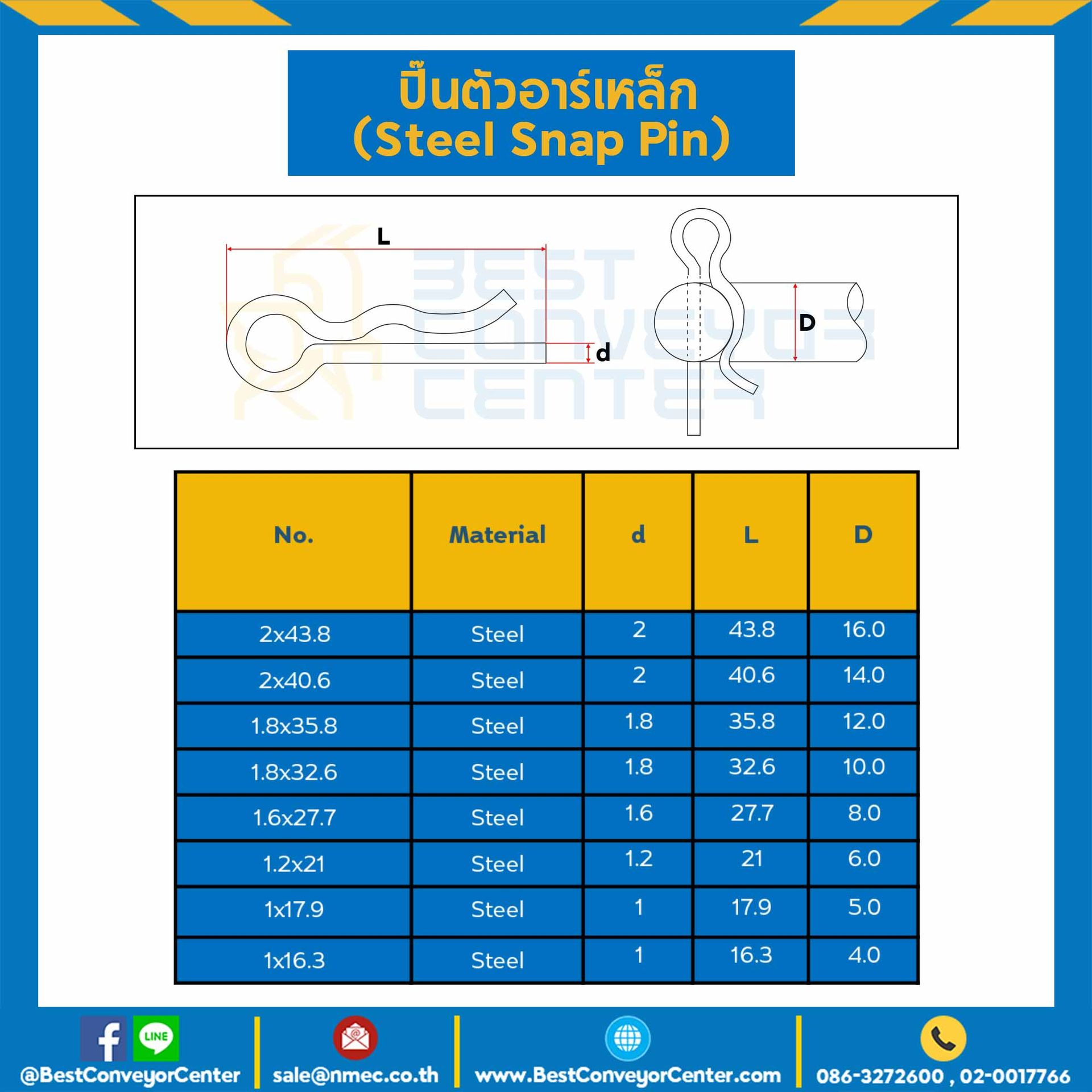 Snap Pin 1.6×27.7-S ปิ๊นตัวอาร์ ขนาด 1.6×27.7 mm. เหล็ก