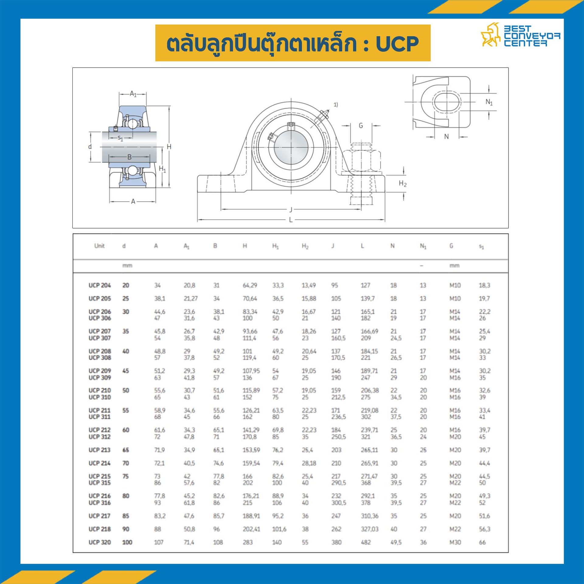 ลูกปืนตุ๊กตา UCP205 ลูกปืนเหล็ก รูเพลา 25 mm. : UCP205-25