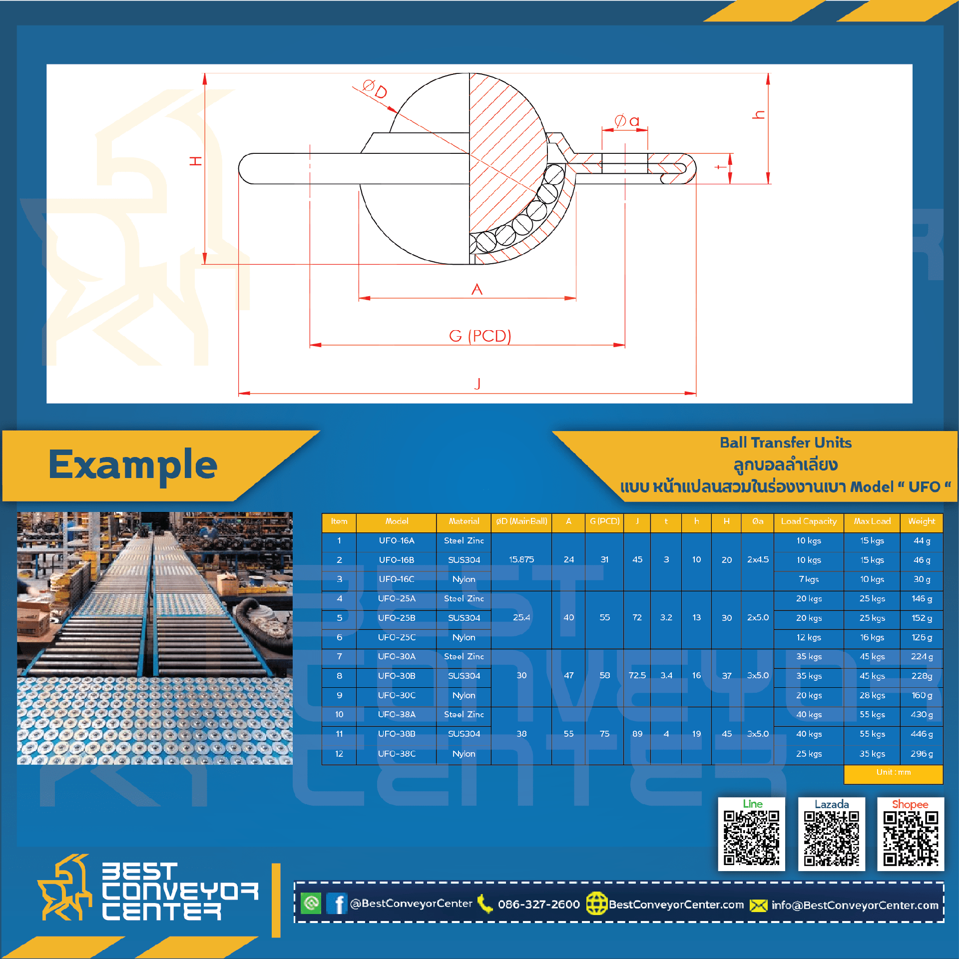 UFO-38A Ball Transfer Units แบบหน้าแปลนวงกลม 38 mm. (Steel Zinc)