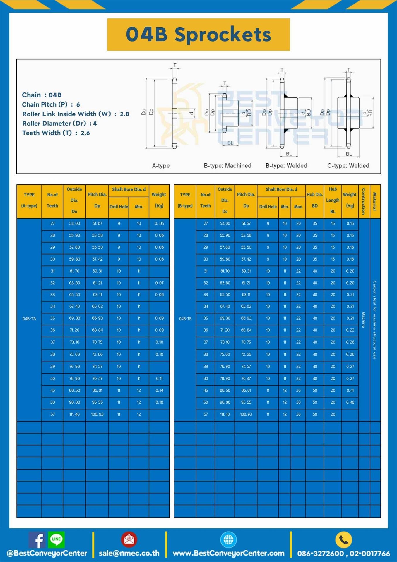เฟืองโซ่สแตนเลส 1 แถว มีดุม 2 ข้าง 04BSS-28TC