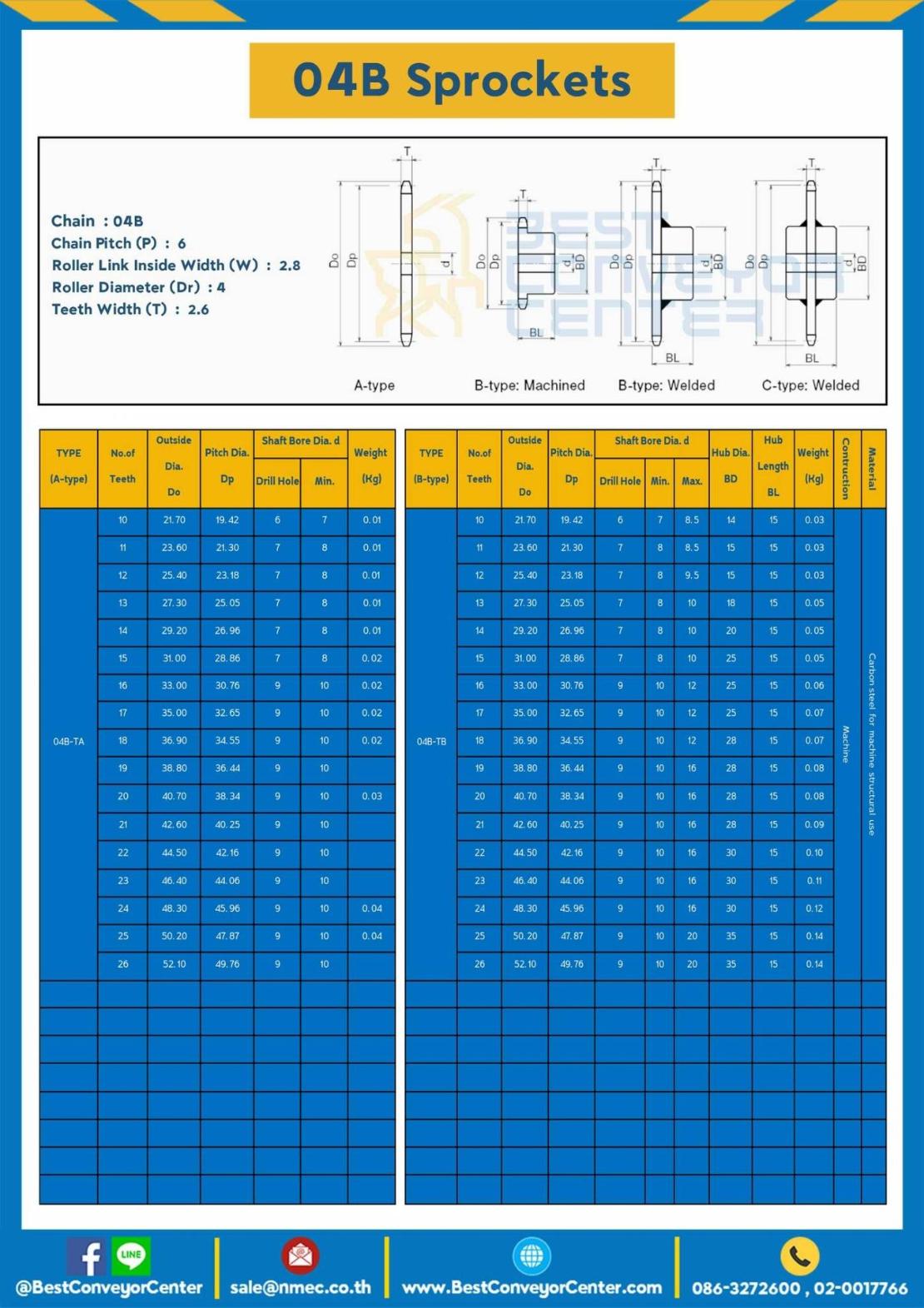 เฟืองโซ่สแตนเลส 1 แถว มีดุม 2 ข้าง 04BSS-31TC