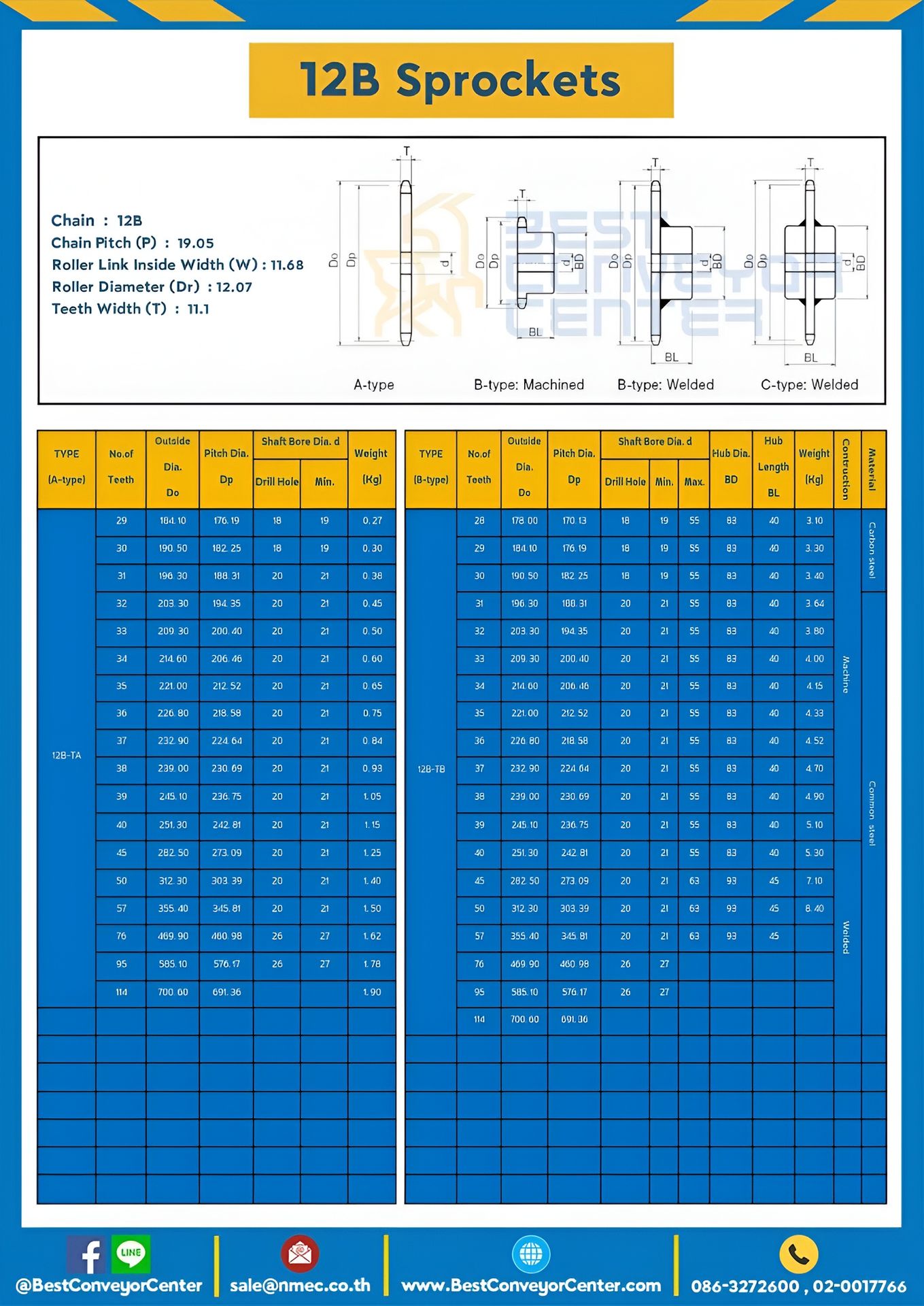 เฟืองโซ่สแตนเลส 1 แถว มีดุม 2 ข้าง 12BSS-105TC