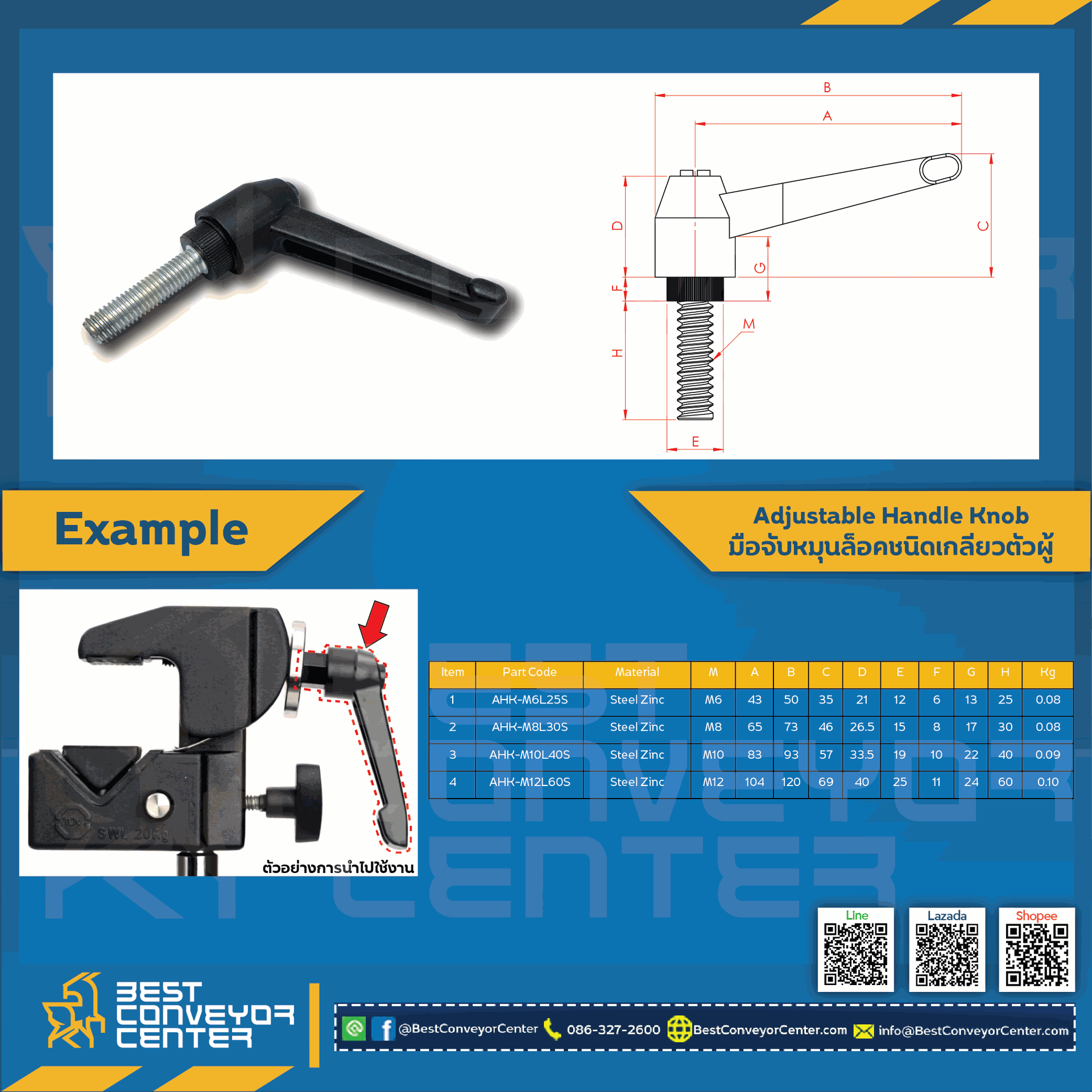 AHK-M10L30SB : ด้ามจับมือหมุนเหล็กหล่อตัวผู้ M10x30 mm.เหล็กดำ