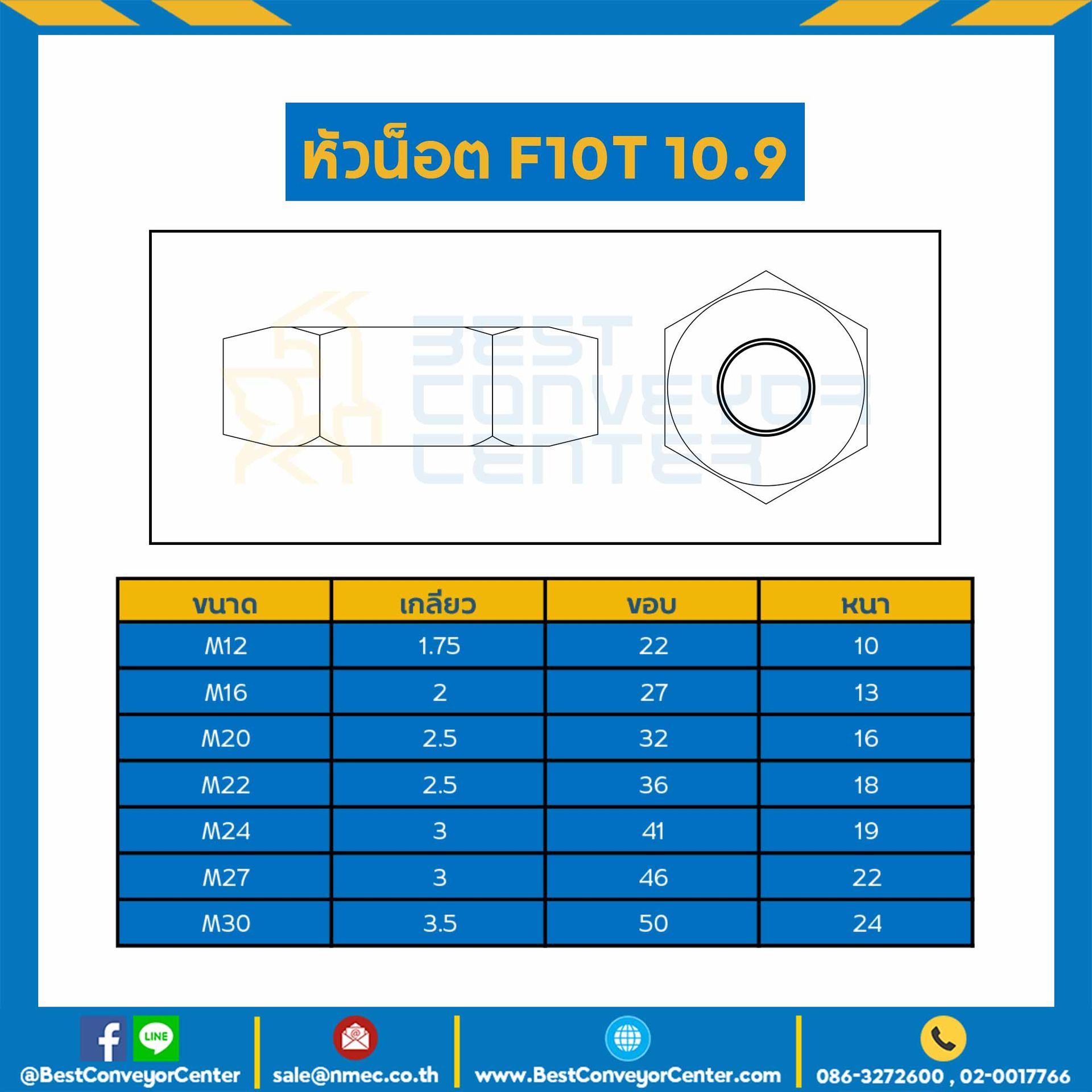 หัวน็อต F10T เกรด 10.9 ขนาด M16x2 ขอบ 27 mm. หนา 13 mm. : HN-F10T-M16