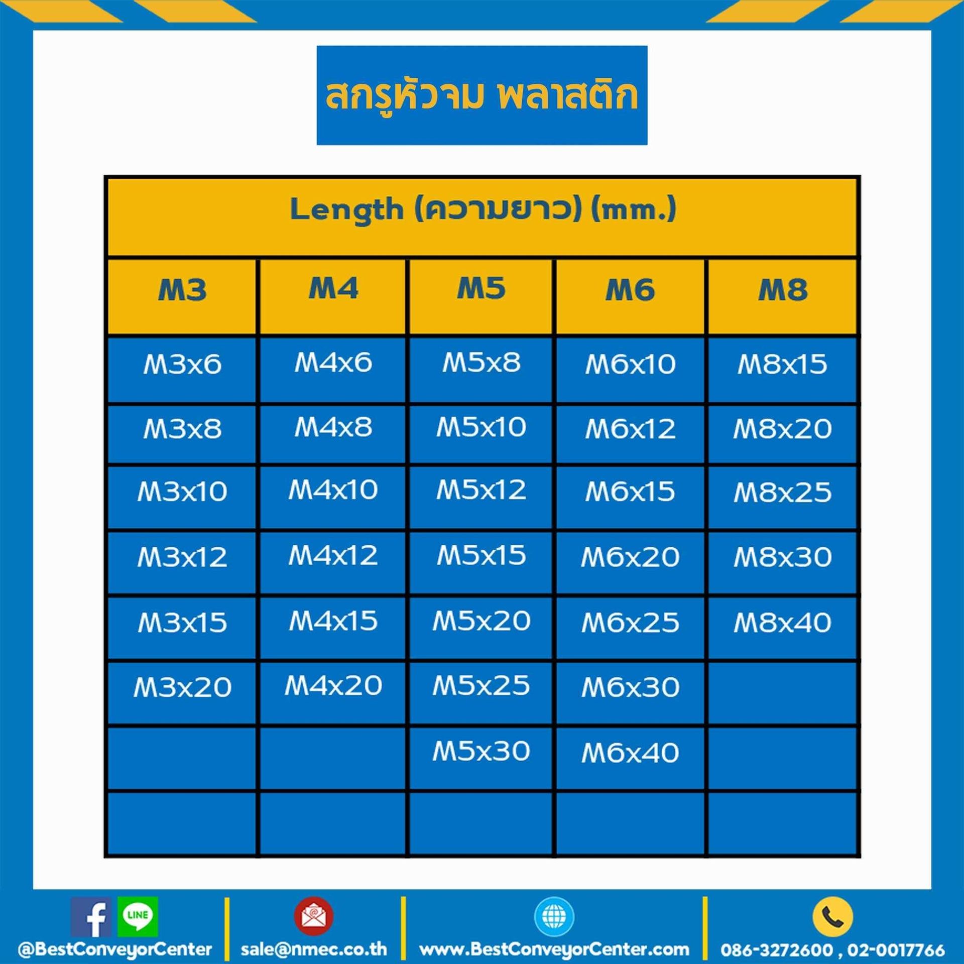 สกรูหัวจม M5x20 mm. เกลียวตลอดพลาสติก : HS-M5L20P