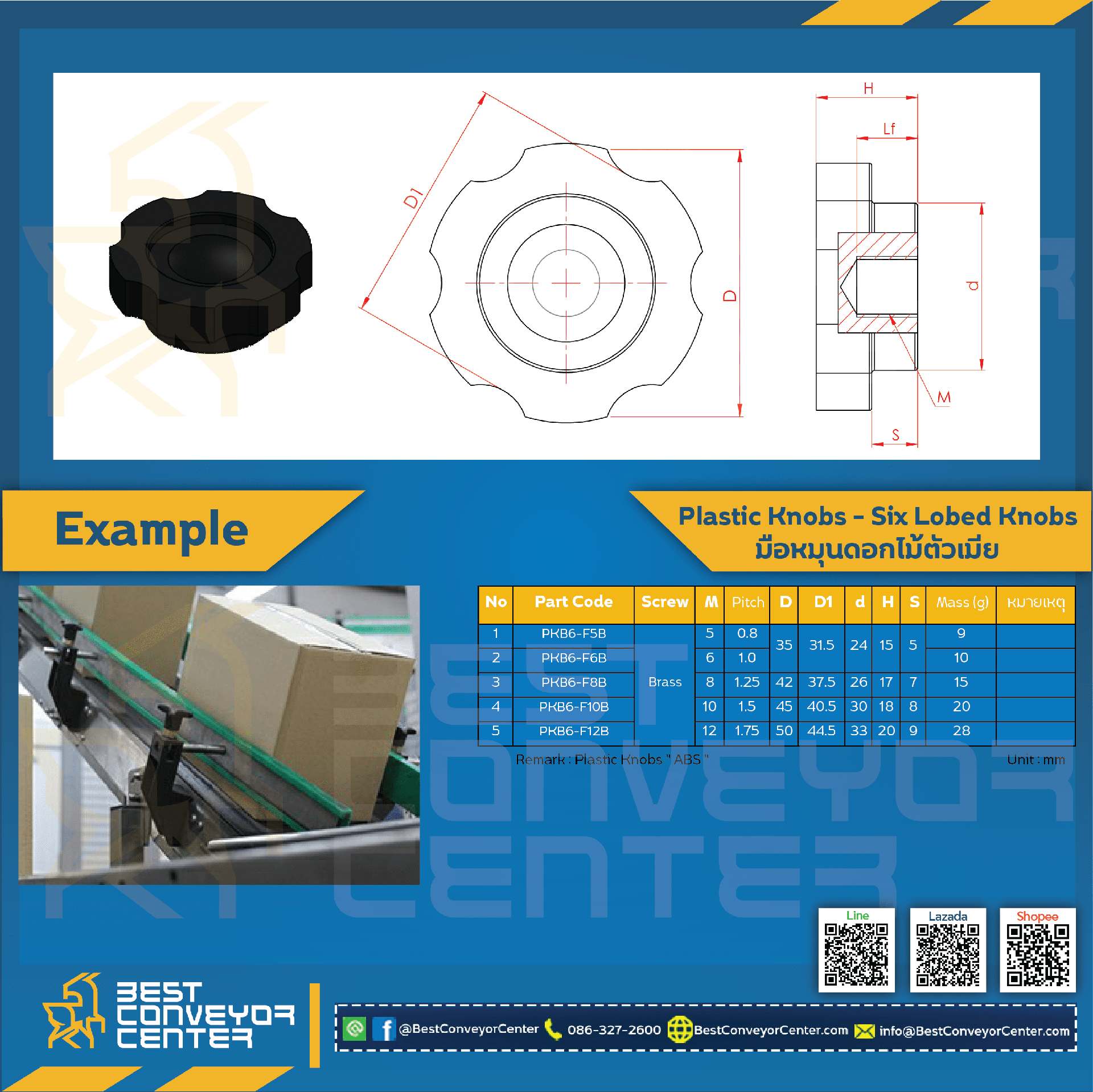 PKB6-F12B ; มือหมุนดอกไม้ ตัวเมีย M12 ทองเหลือง