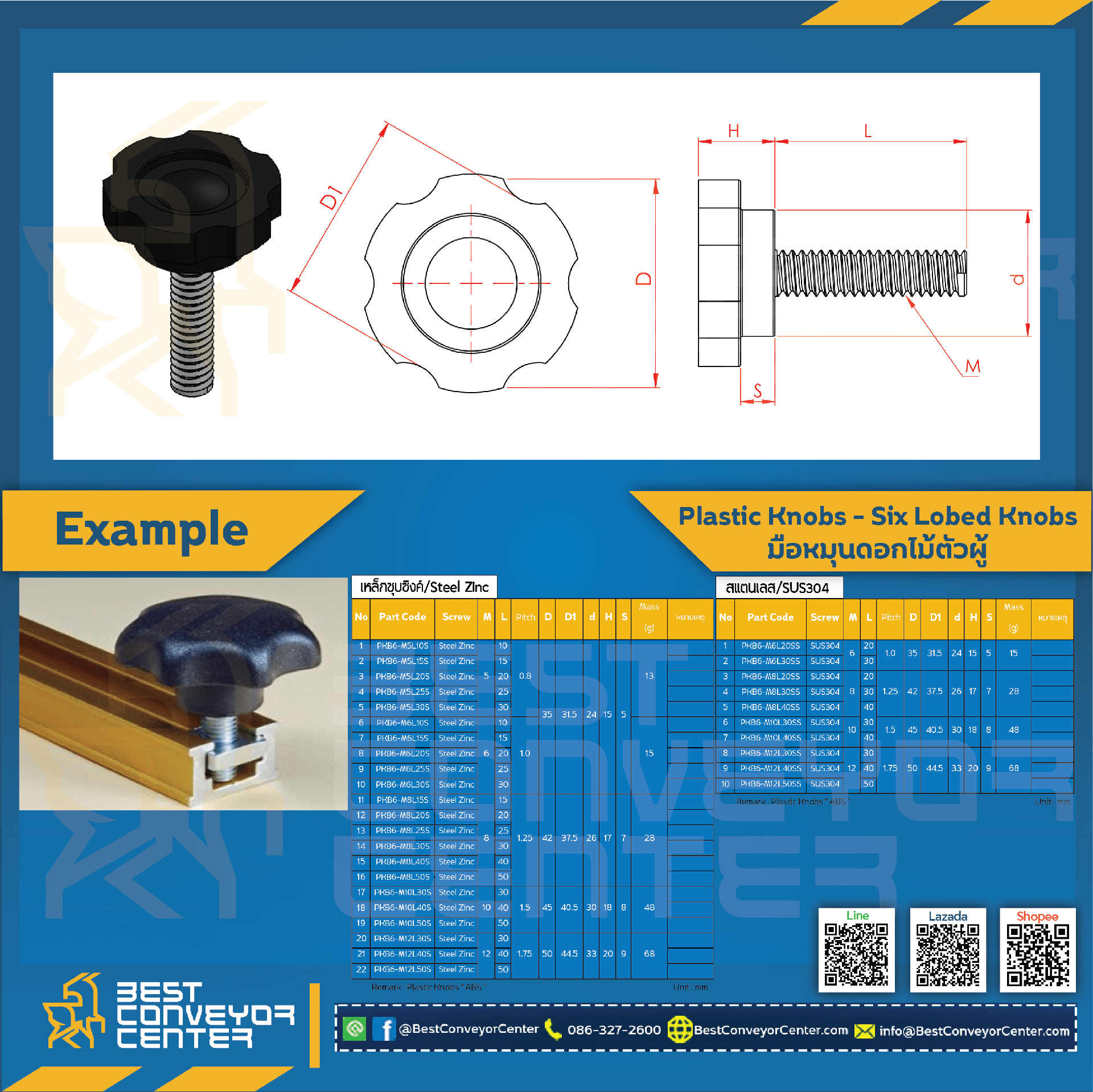 PKB6-M8L30S : มือหมุนดอกไม้ตัวผู้ M8x30 mm. (Steel Zinc)