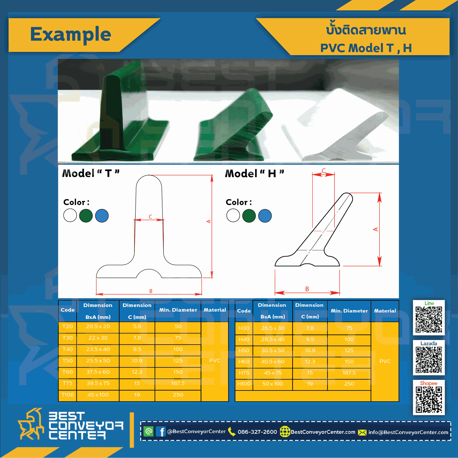 PVC Carrier T100 ; บั้งสายพาน PVC Carrier 45×100 mm.
