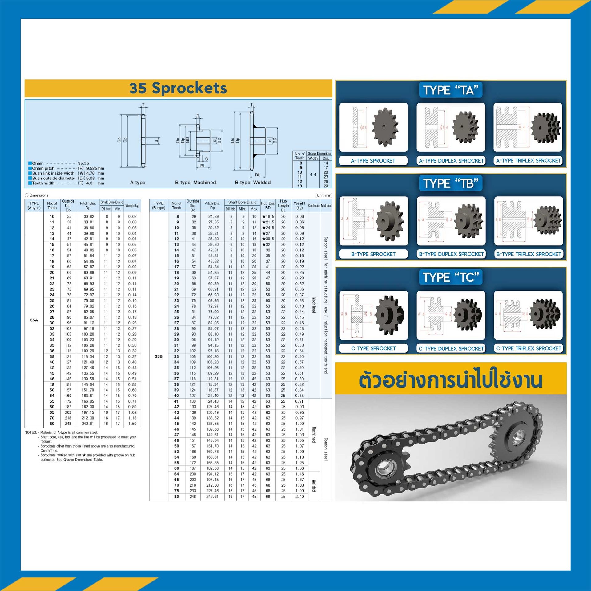 เฟืองโซ่ แบบเรียบ เบอร์ 35-20 ฟัน เหล็กธรรมดา : RS35-20TA