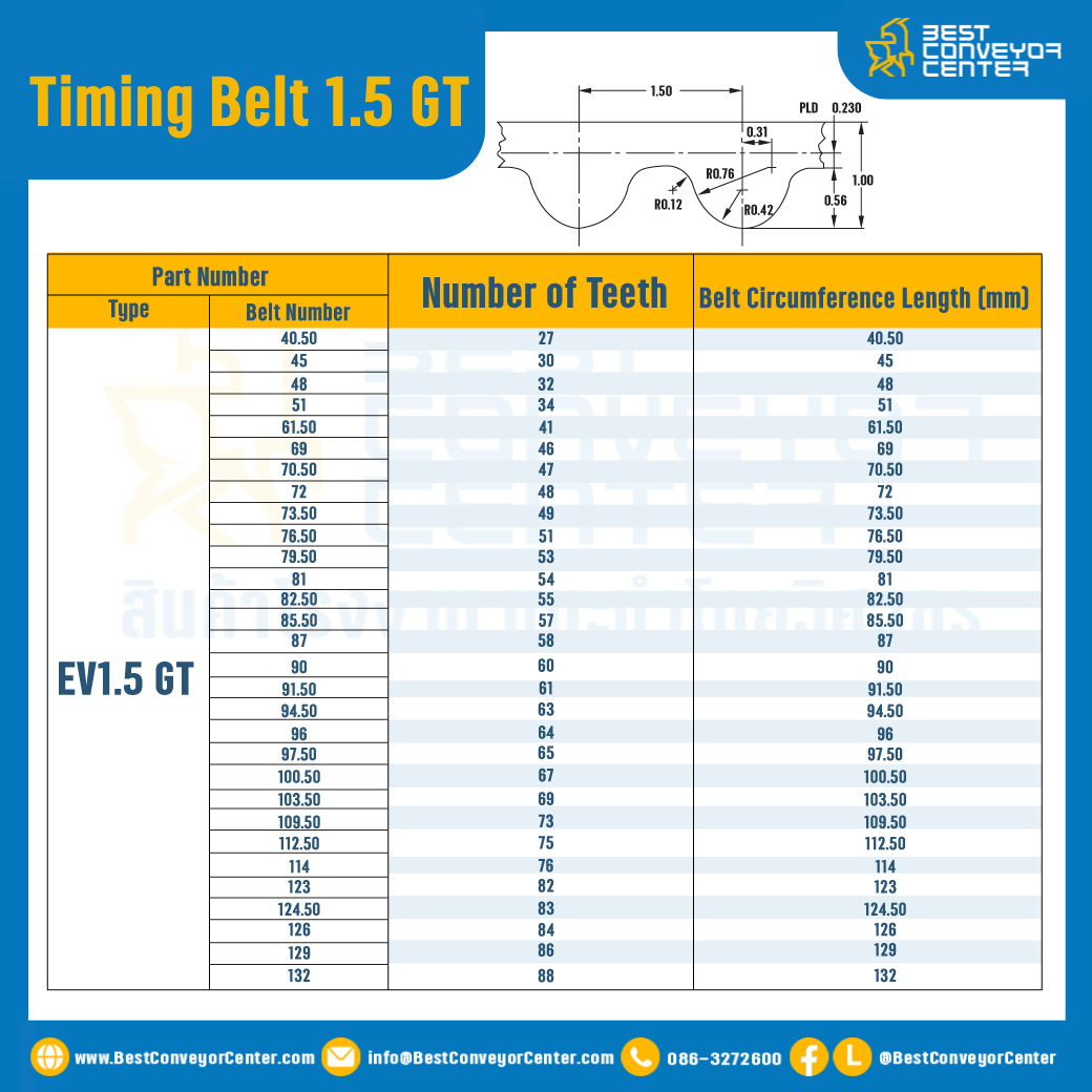ไทม์มิ่ง เบลล์ Timing Belt 1.5GT 104 ฟัน ยาว 156 mm. : Timing Belt 1.5GT-104T-156