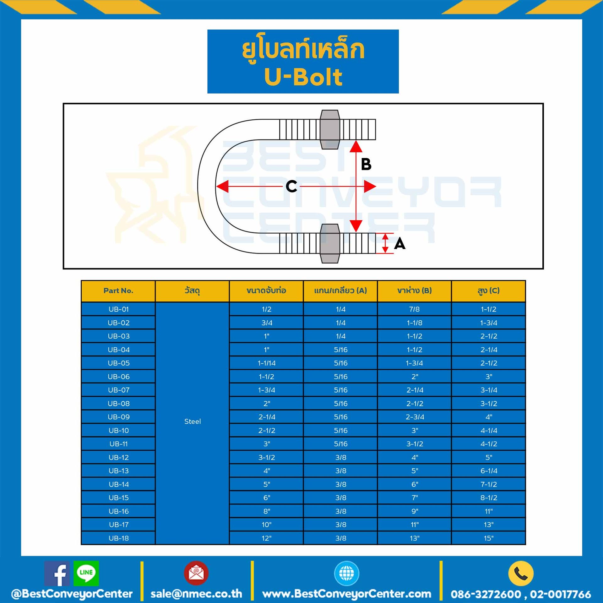 UB-06 ยูโบลท์เหล็ก พร้อมหัวน๊อต 2 ตัว ขนาด 1-1/2 แกน 5/16